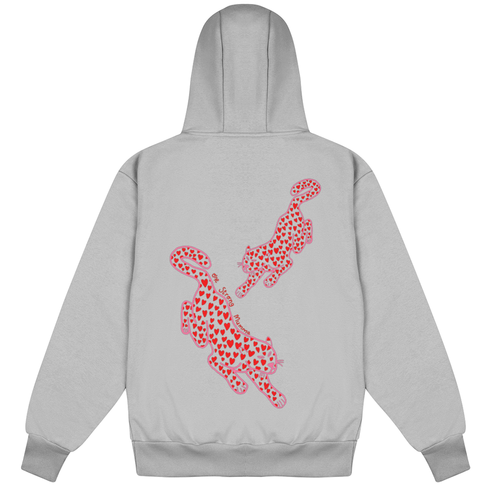 This One Strong Mumma Leopard Love Zoodie is made with a heavyweight premium cotton-rich fabric, it has an oversized, boxy fit, true to size, and features a double-ended YKK zip, ribbed collar, cuffs and hem. The Leopard design is digitally printed on the back of the zoodie for long lasting wear.
